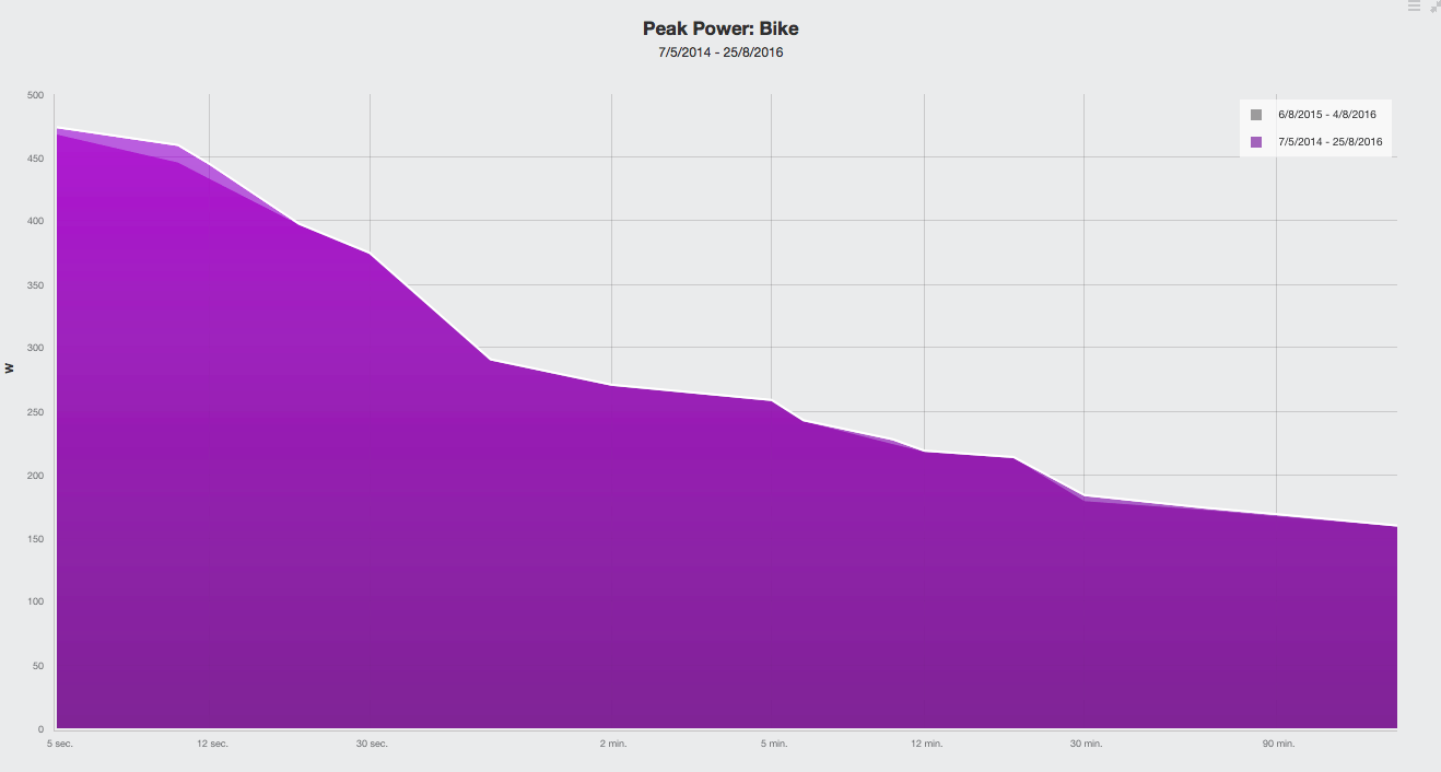 Estos datos permiten ver cambios en el estado de forma del deportista, y lo más importante, permite saber con precisión cuál es el mejor registro de potencia en cualquier duración del esfuerzo. Por lo tanto, se puede observar la tendencia y punto fuerte del triatleta: si es buen escalador, o sprinter, o de fondo, …