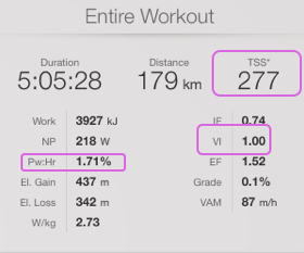 Si el triatleta ha sobrepasado los TSS planeados (por una mala previsión del IF, calculo erróneo del tiempo parcial, o debido al viento), o hay una deriva cardíaca superior al 5% (por una mala alimentación, deshidratación, o simplemente fatiga neuromuscular), o si el deportista no ha mantenido una fuerza constante (V.I), seguramente no habrá respondido tal y como estaba previsto en el segmento final de la prueba.