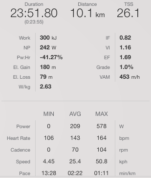 –> En la imagen se observa un VI 1.00 en el segmento donde se pedaleó a 218w NP y 217w de media.