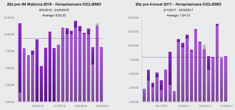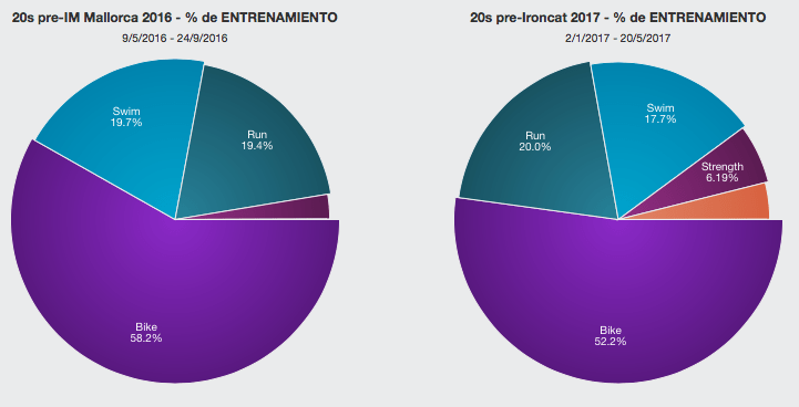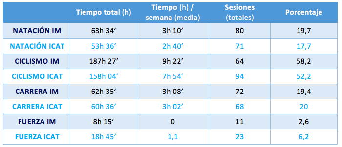Ciclismo: Menos tiempo sin viento y más con viento moderado. A una intensidad de 72-75% (213w-222w), con cabra, ruedas con 60cm de perfil, casco “aero”, depilado y mono de dos piezas sin mangas. Ingiriendo 90gr de carbohidratos por hora (repartidos en 4 barritas, 6 geles y 6 bidones con maltodrextrina/fructosa/glucosa)