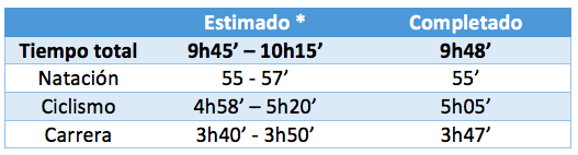 A partir del nivel de forma (CTL), los resultados en entrenamientos, competición MD y tests, hicimos una estimación del tiempo y, ¡cumplió con las expectativas!